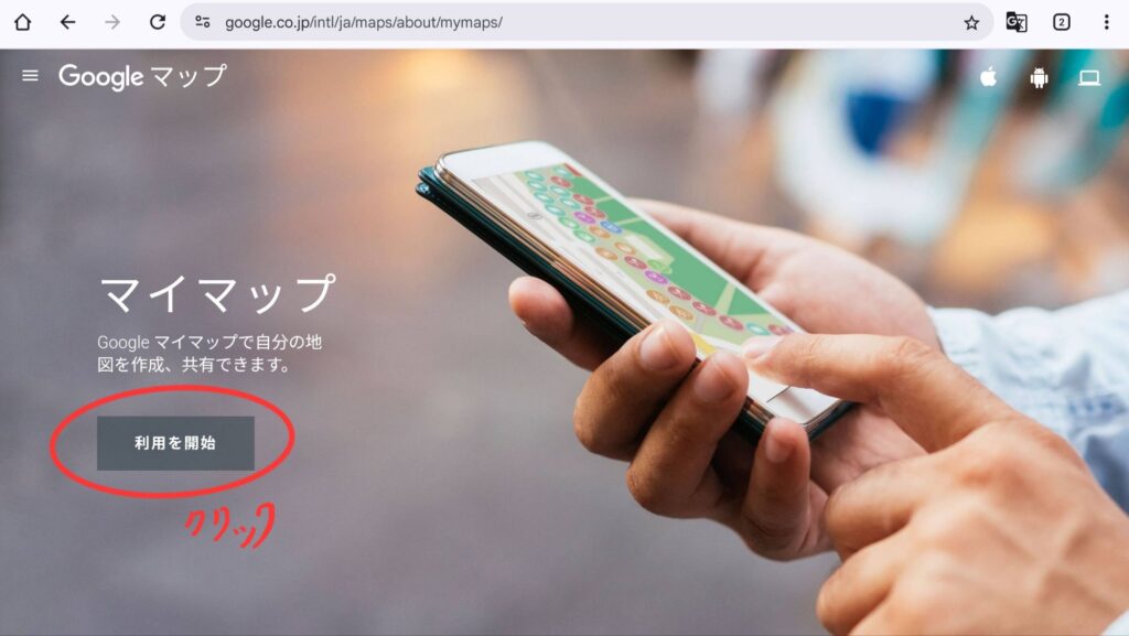 それでは<Googleマイマップ>にアクセスしましょう!