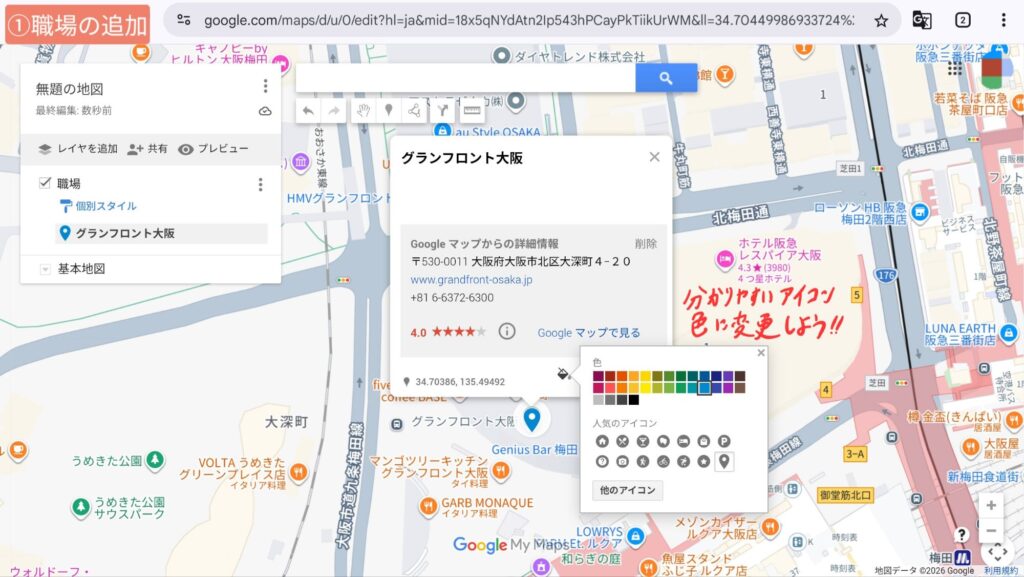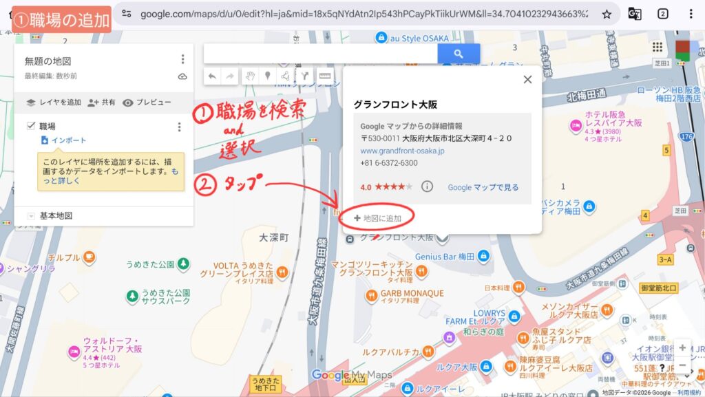 今回は梅田より西側が候補地になりそうなので、そっち側を作成していくよ