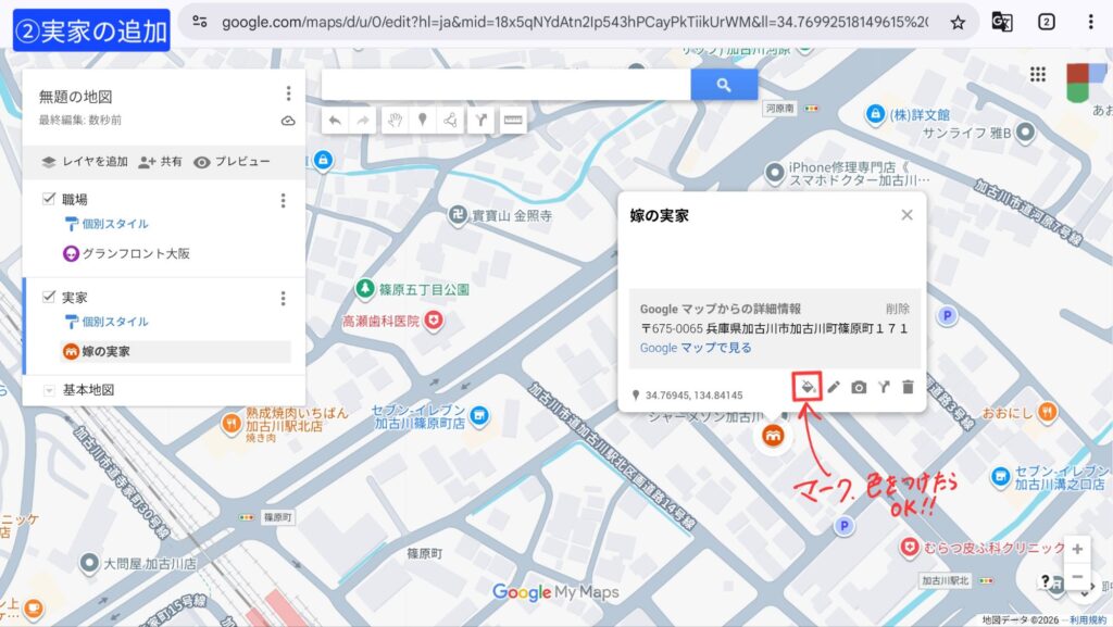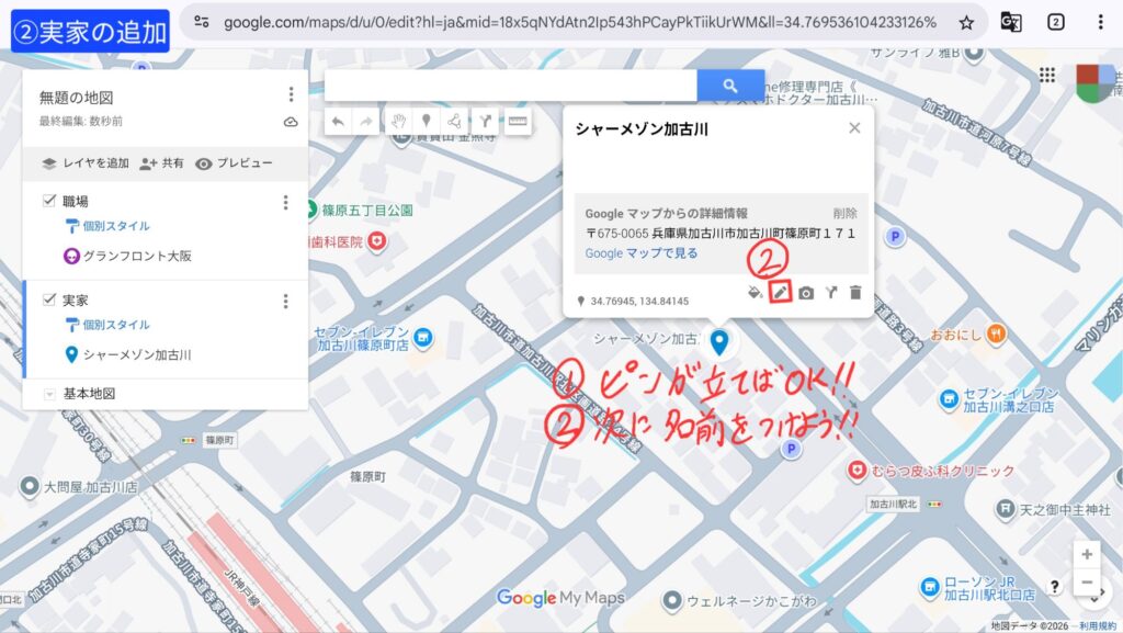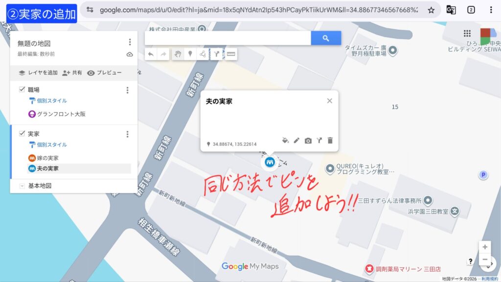 夫の実家も、同じようにピンを立てよう!