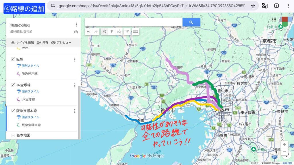 1つの路線が完了したら、他の路線も同じようにやっていきましょう!